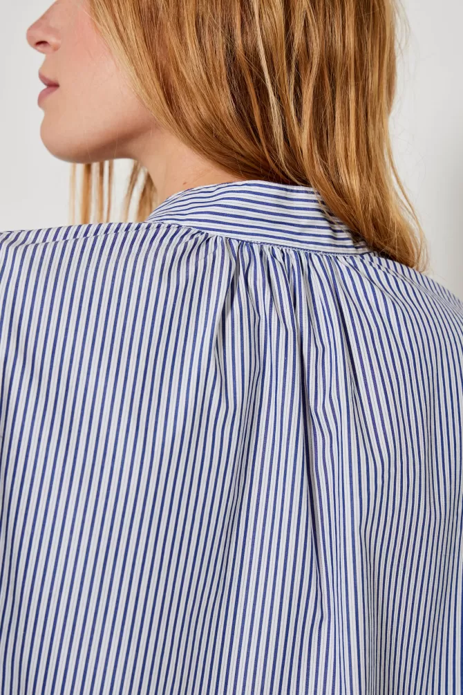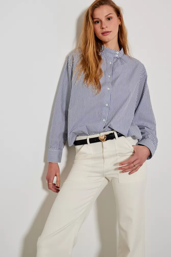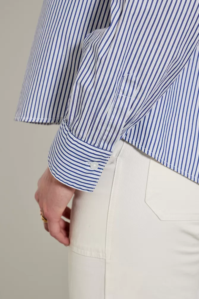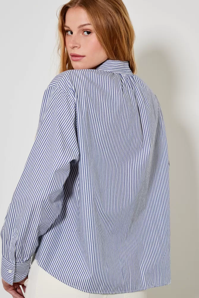 Chemise en popelineCoupe droiteCol montantManches longuesFinition arrondie sur le fondNotre mannequin porte une taille S…