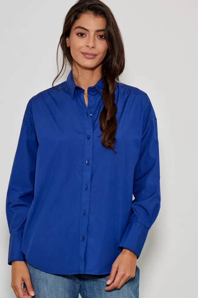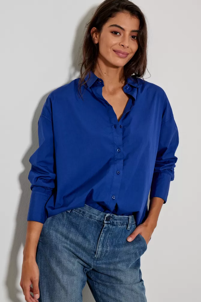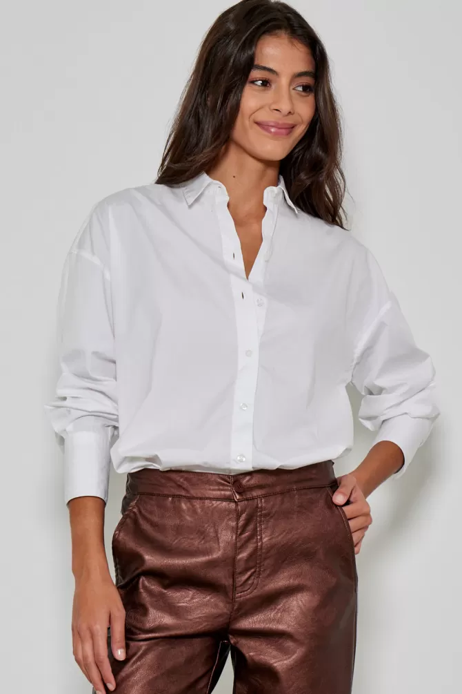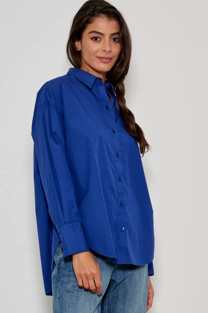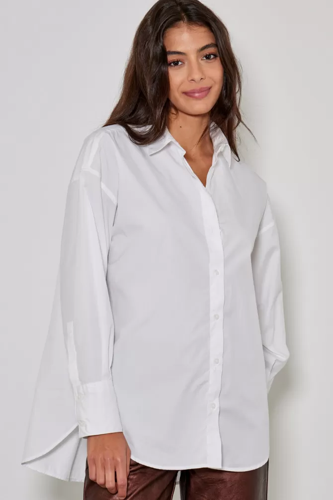 Chemise en popelineCoupe OversizeSe ferme par une patte de boutonnage sur le devant avec des boutonsCol libreManches lo…