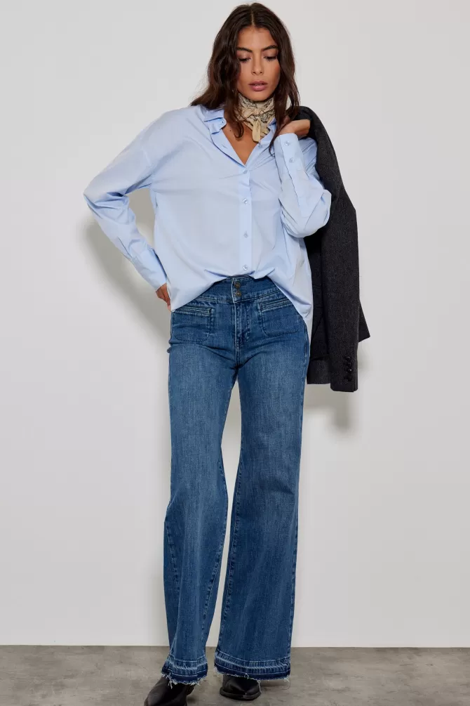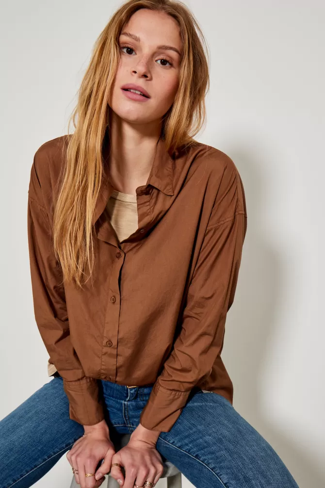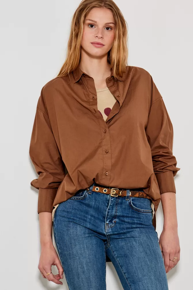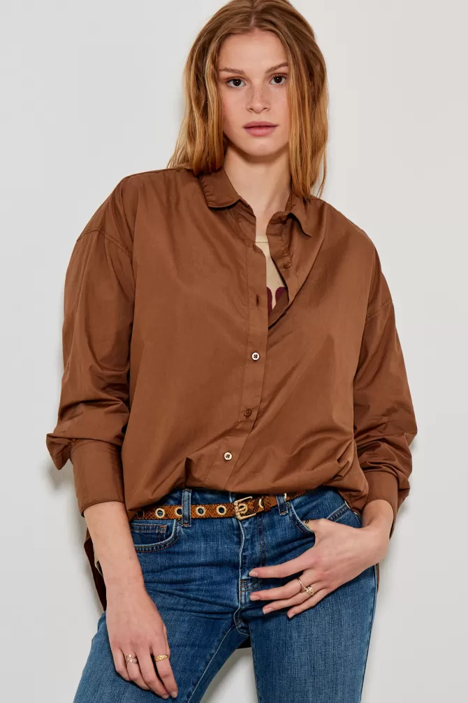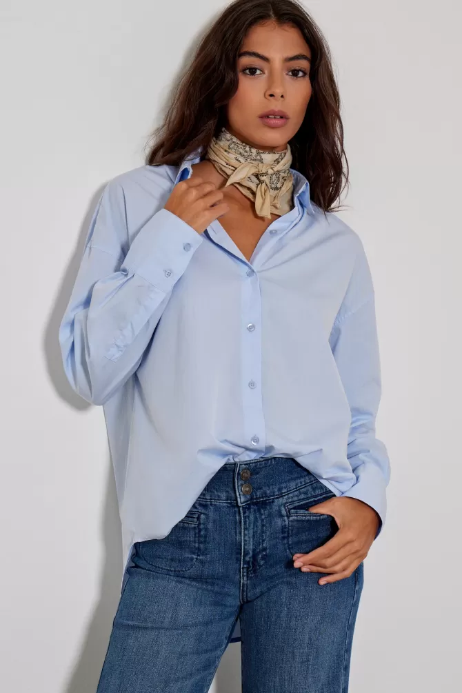 Chemise en popelineCoupe OversizeSe ferme par une patte de boutonnage sur le devant avec des boutonsCol libreManches lo…