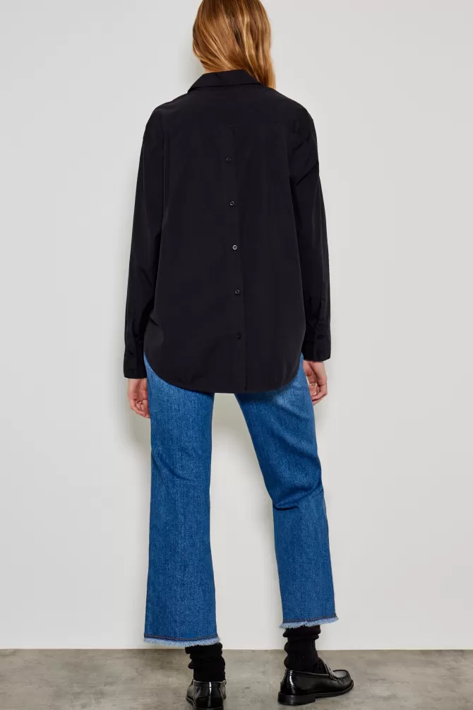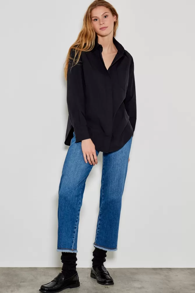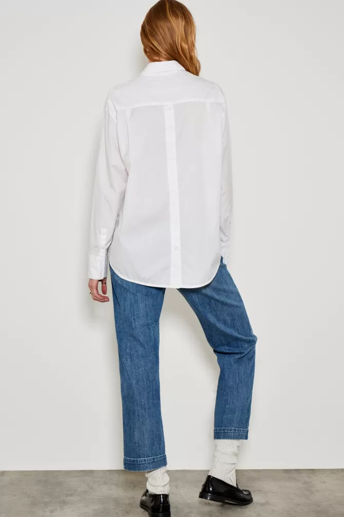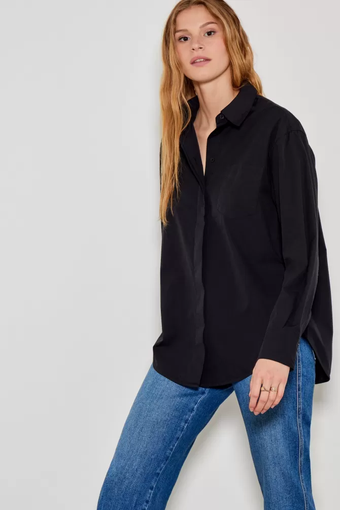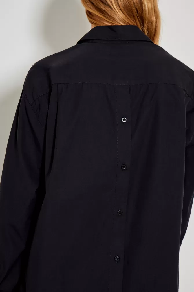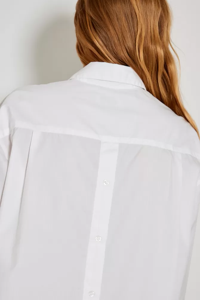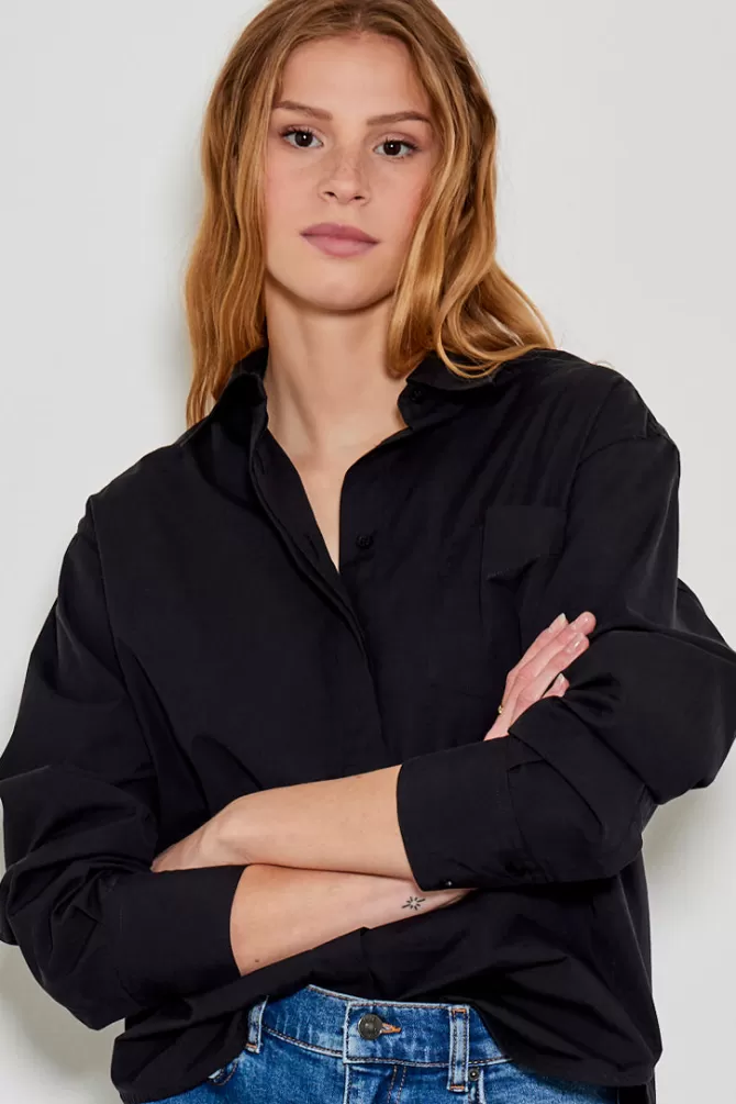 Poplin shirt Oversized cut Closes with a placket on the front with buttons Free collar Long sleeves Front pocket Rounde…