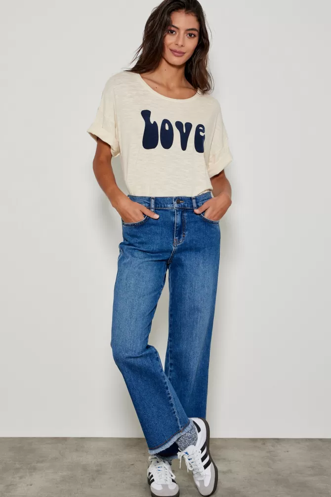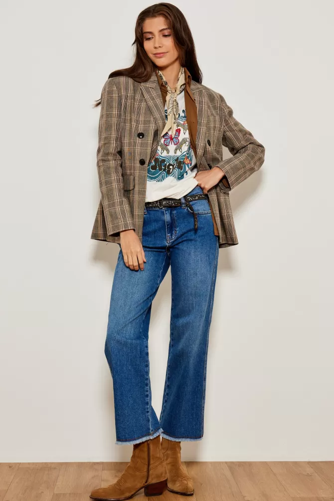 Wide Jeans Standard size jeans Closure with a FIVE branded button and a hidden zip under the flap Belt with loops Fraye…