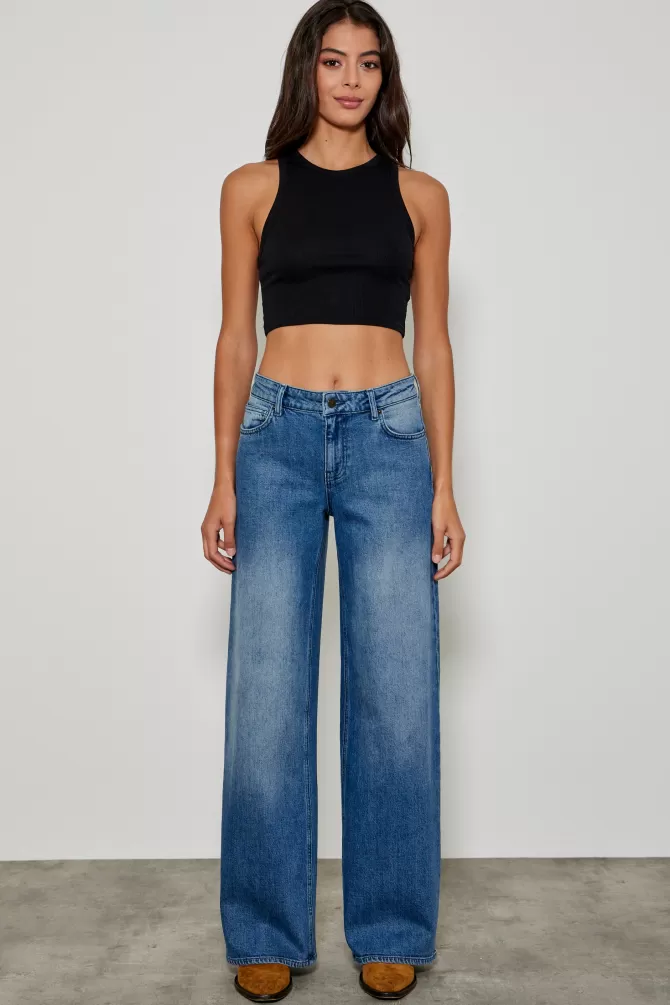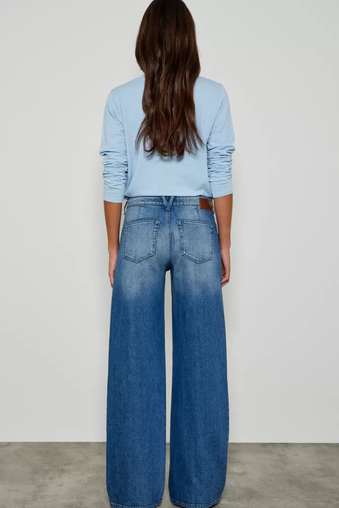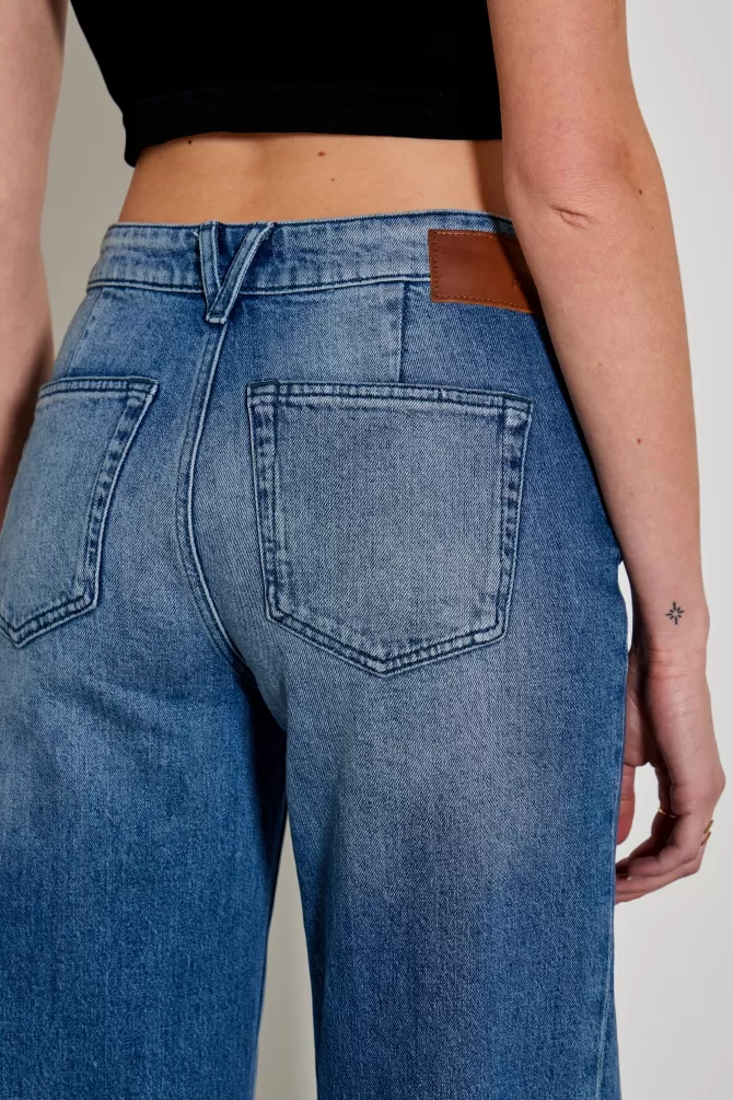Jeans LargeJeans taille standardFermeture avec un bouton de marque FIVE et un zip caché sous le rabatCeinture avec pass…