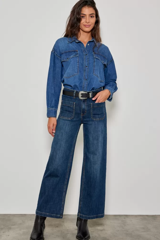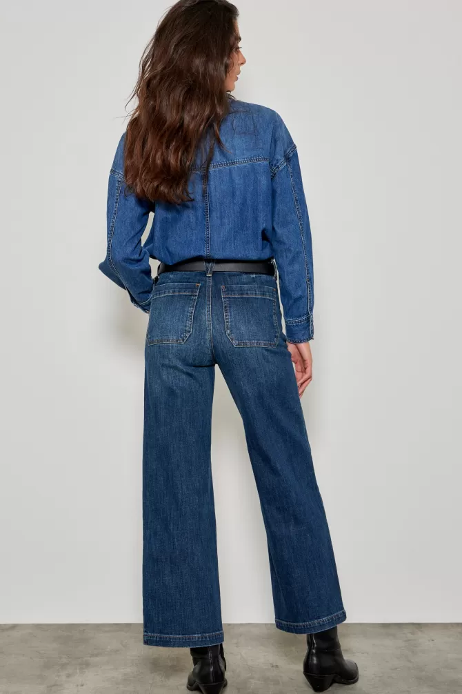 Jeans largeTaille standardFermeture avec un bouton de marque FIVE et un zip caché sous le rabatCeinture avec passantsD…