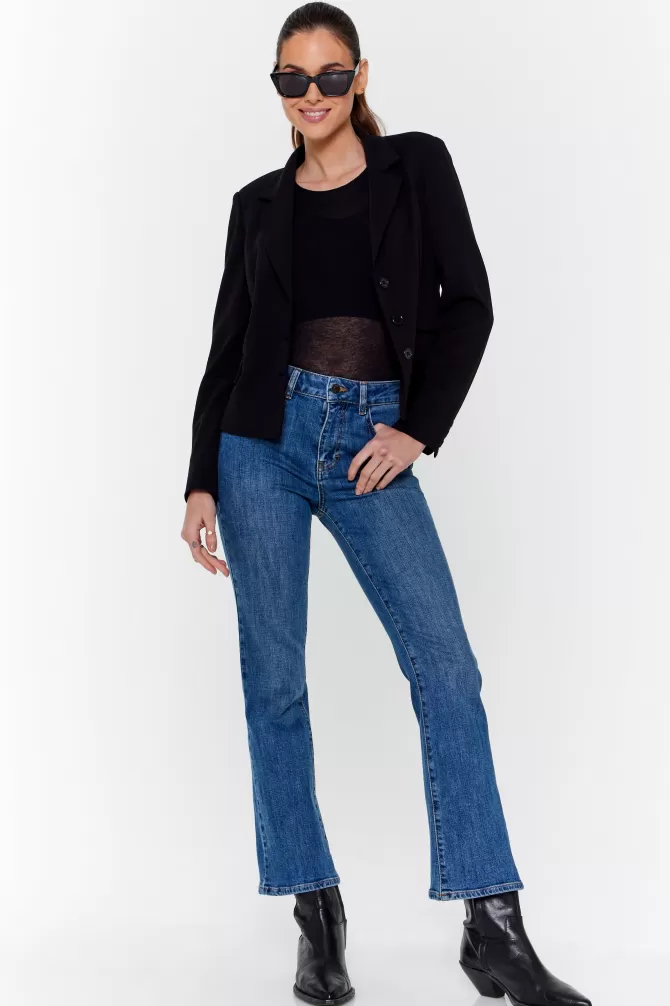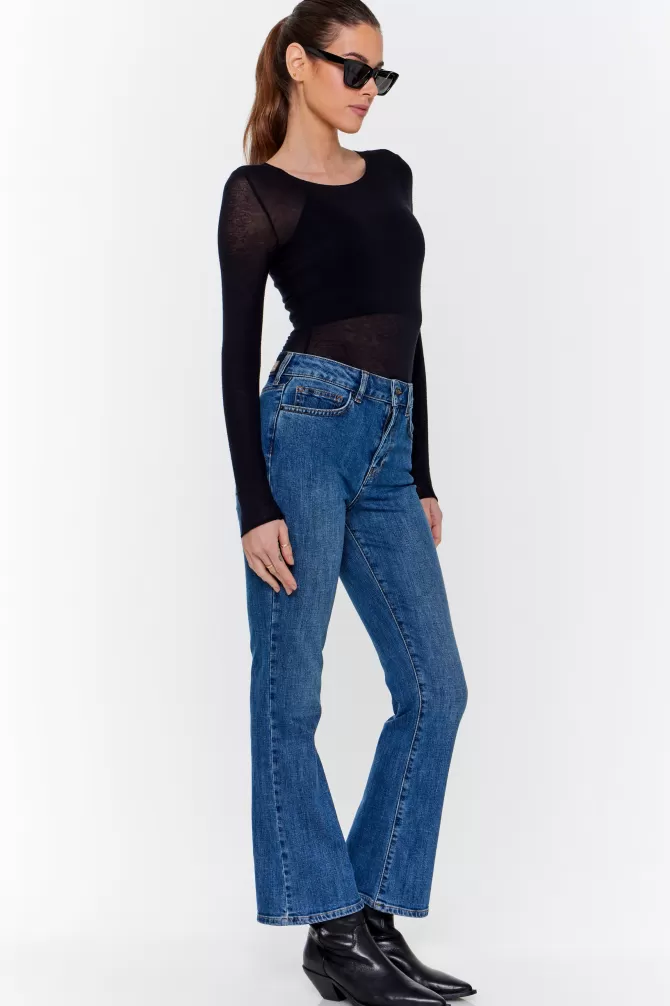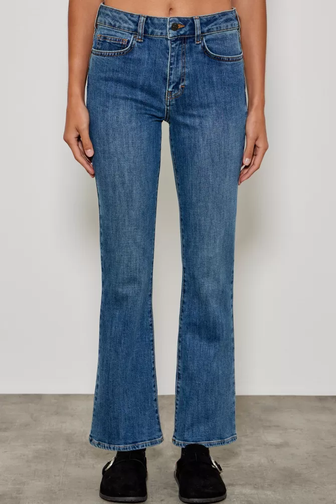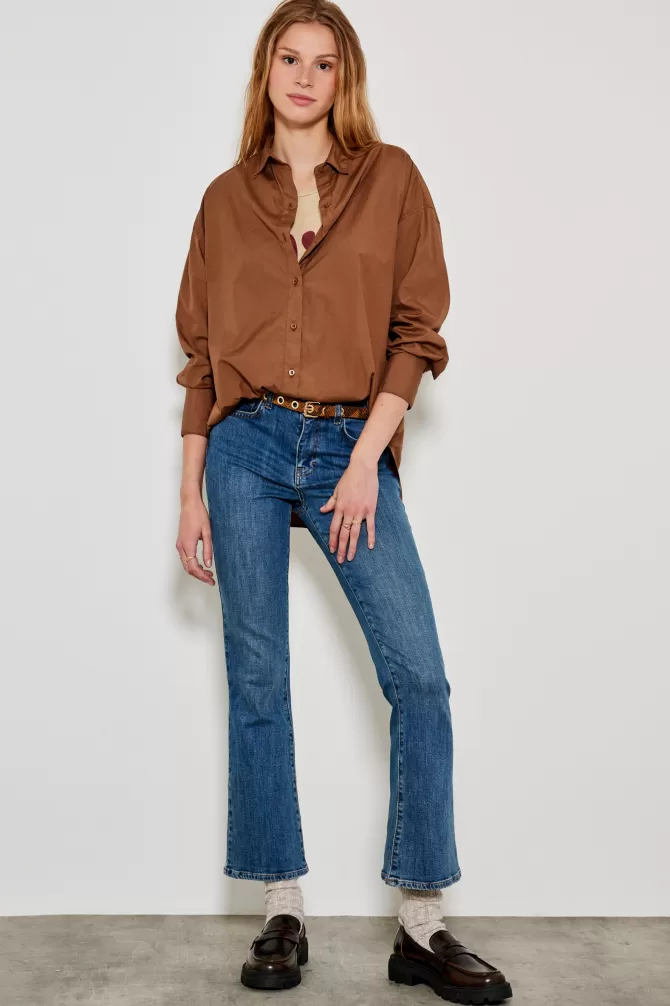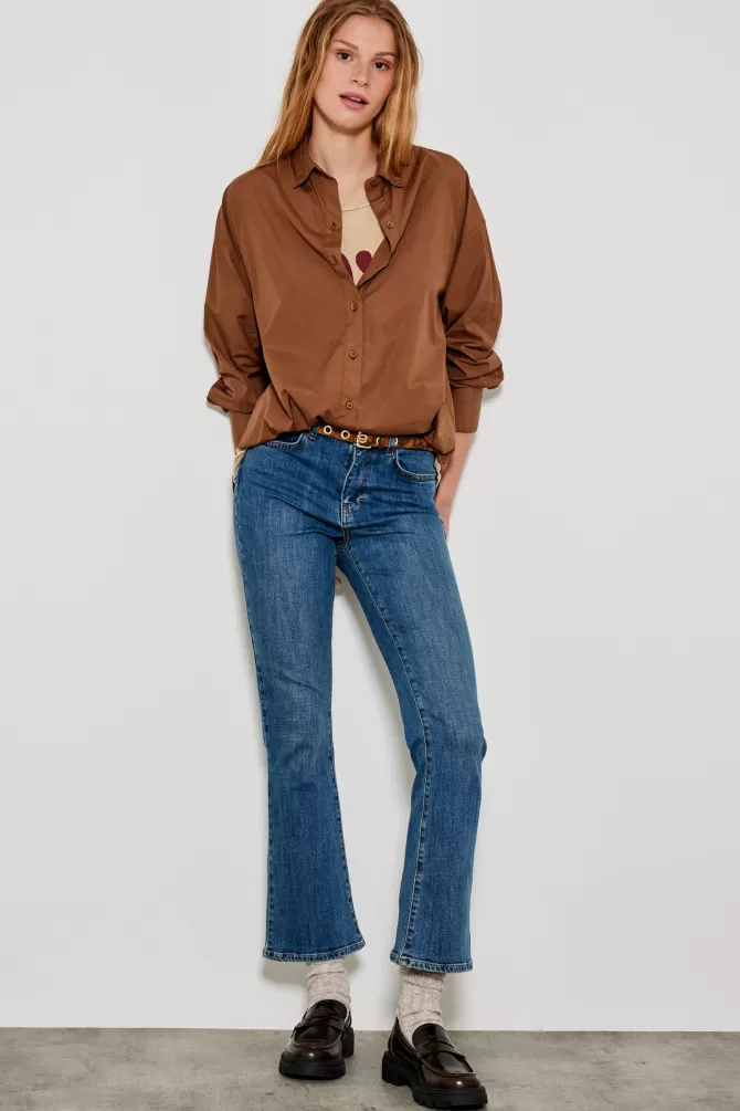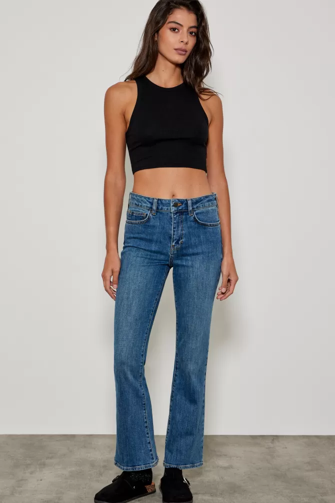 Jeans flare croppedTaille standardFermeture avec un bouton de marque FIVE et un zip caché sous le rabatCeinture avec pa…