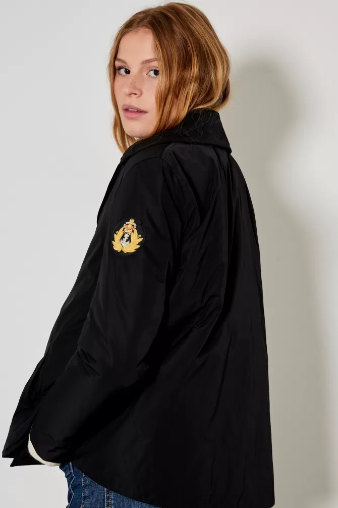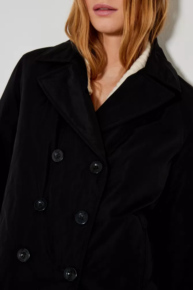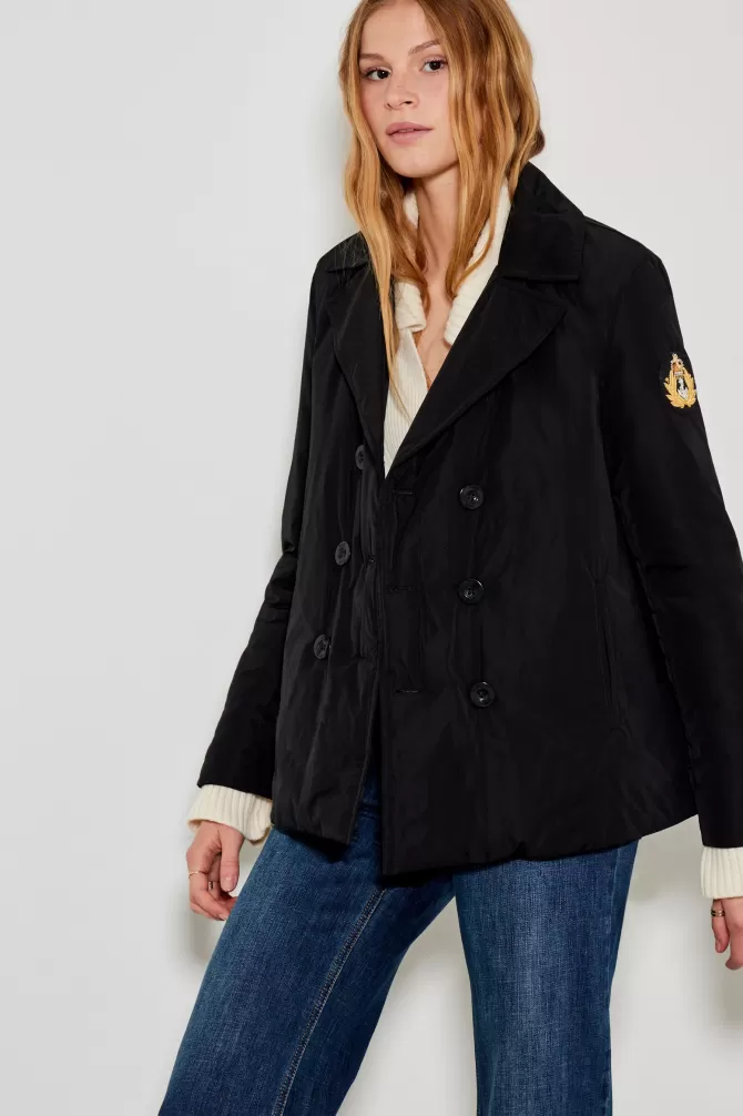 CabanCoupe droiteFermeture à boutonsBadge sur la manche gauche2 poches sur le devantNotre mannequin porte une taille S.