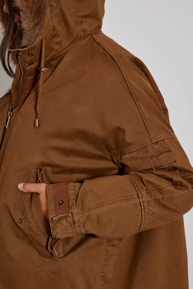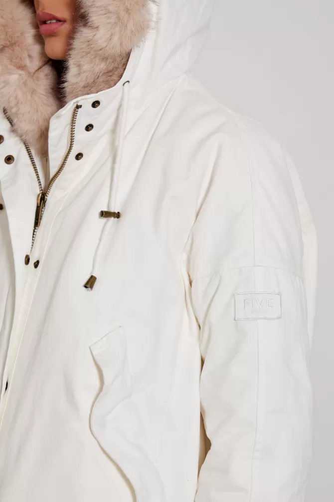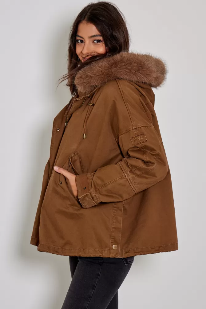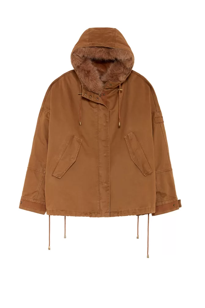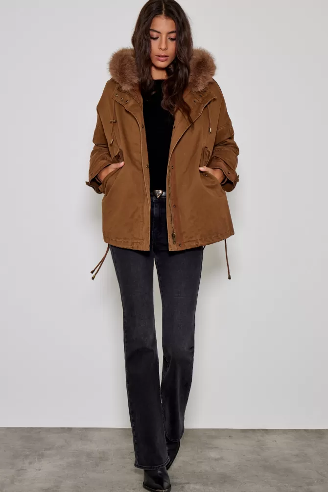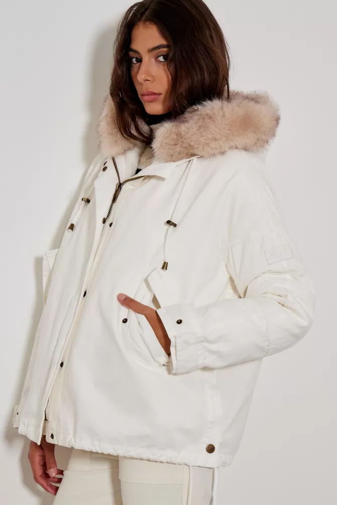 Parka looseCoupe courte et largeFermeture cachée sous rabat2 poches sur le devantCapuche avec col en fausse fourrureDo…