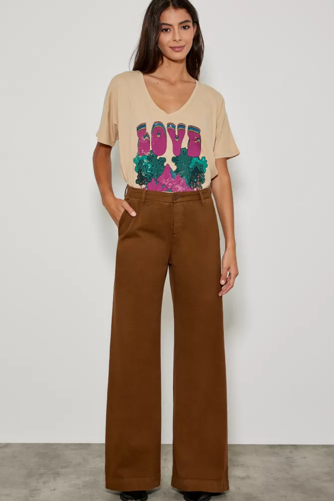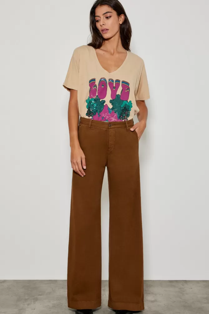 Pantalon LargeTaille standardFermeture avec un bouton de marque FIVE et un zip caché sous le rabatCeinture avec passant…