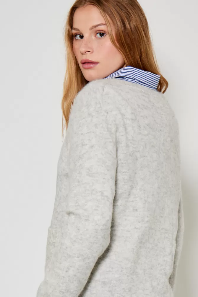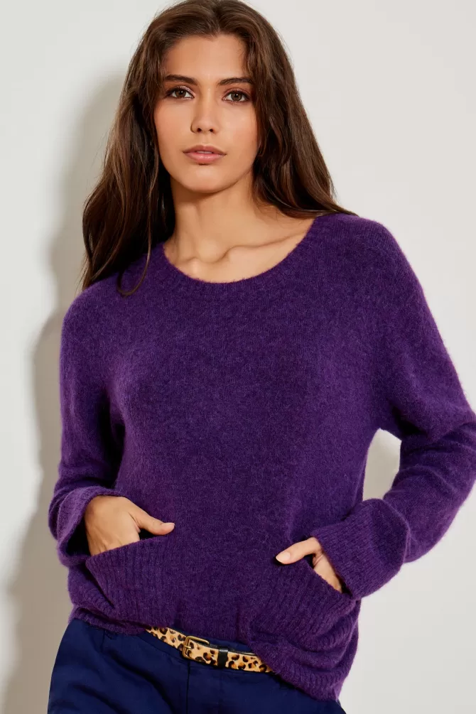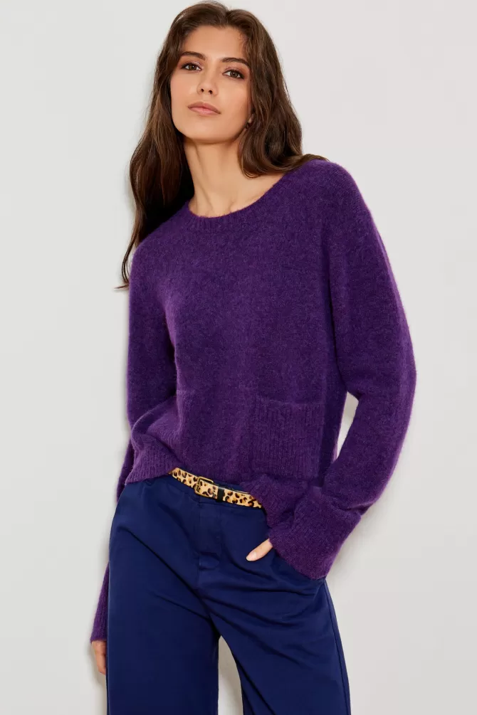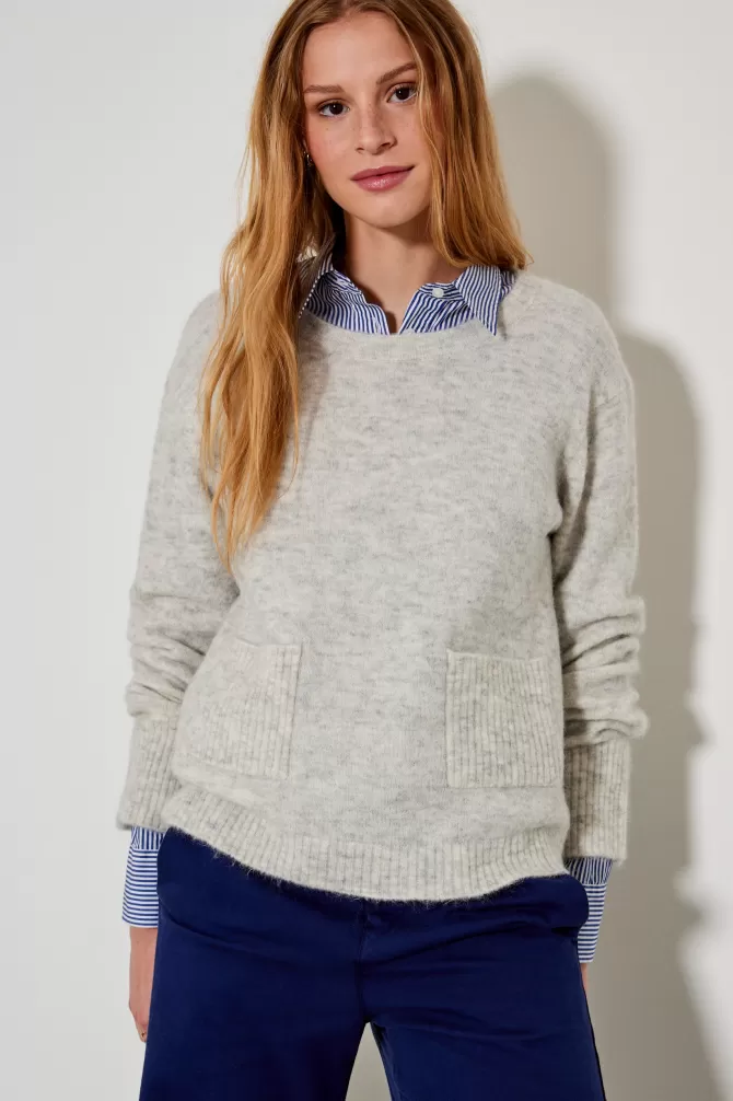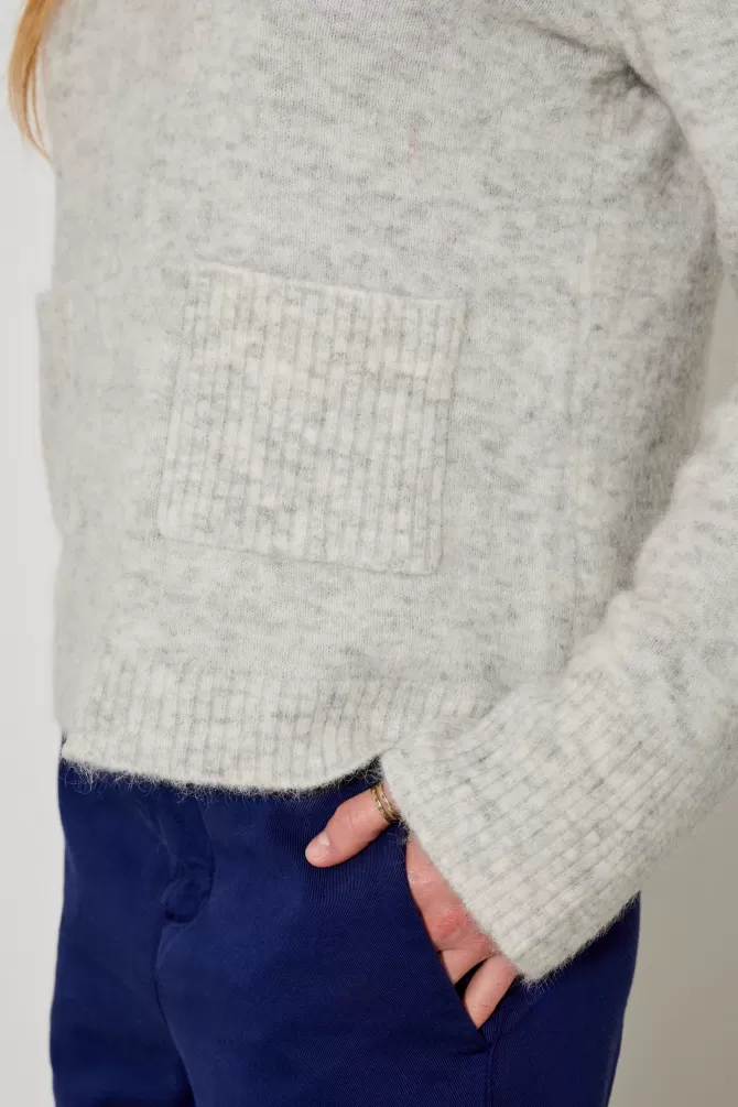 Pull ampleCol rondEmmanchure droiteManche longue2 poches sur le devantNotre mannequin porte une taille S