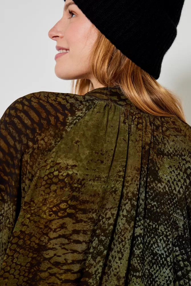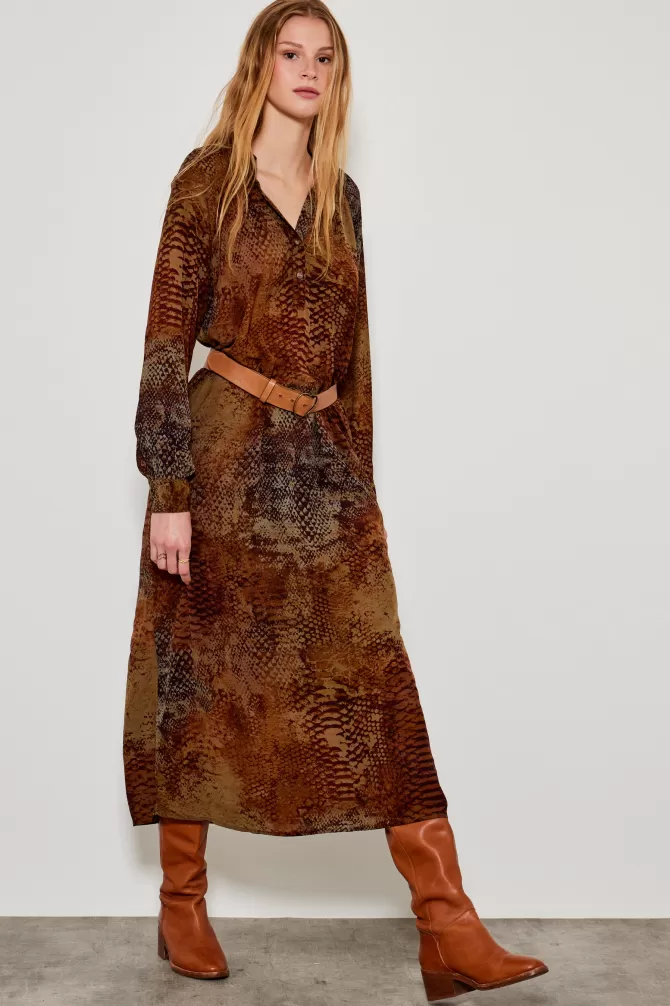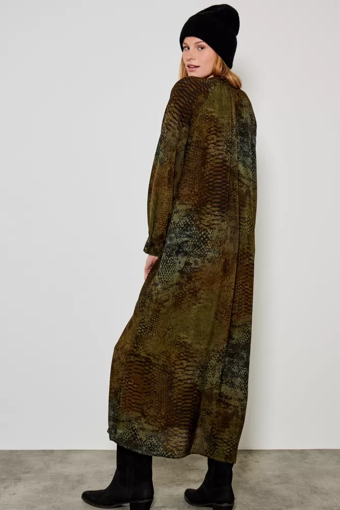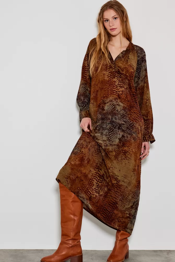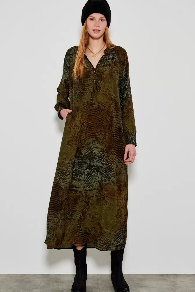 Robe longue ampleCol tunisienEmmanchure raglanManches longuesPoches sur le côtéHauteur milieu dos : 130cmNotre mannequ…