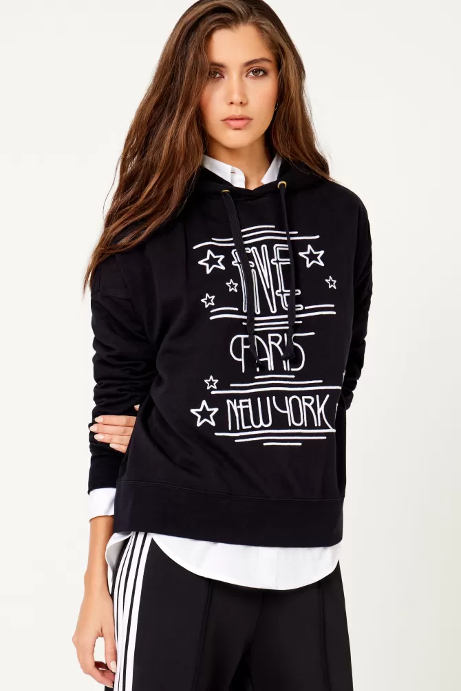 Sweat-shirt à capucheEmmanchure droiteCoupe ampleBroderie sur le devantNotre mannequin porte une taille S