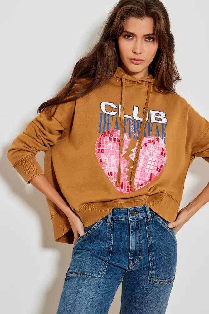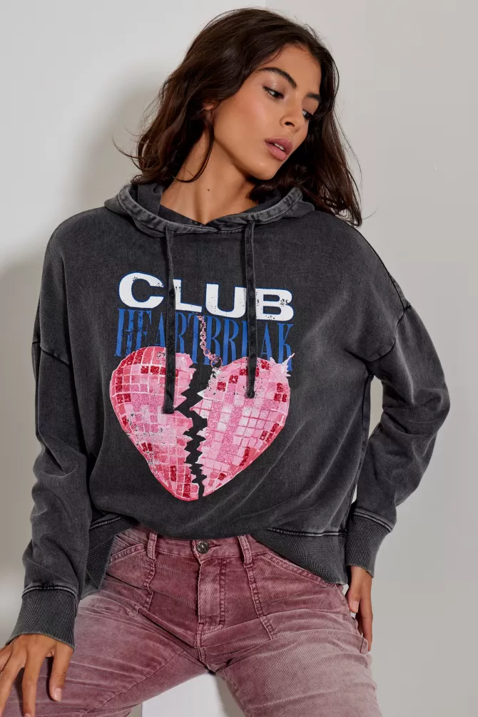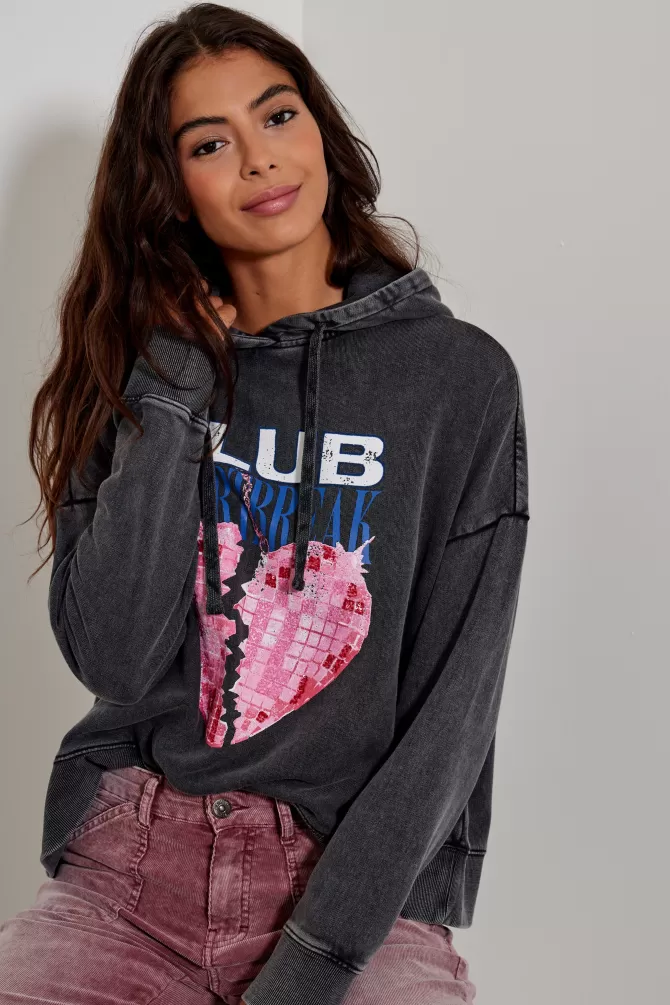 Hooded sweatshirt Straight armhole Loose fit Print on the front Our model is wearing a size S