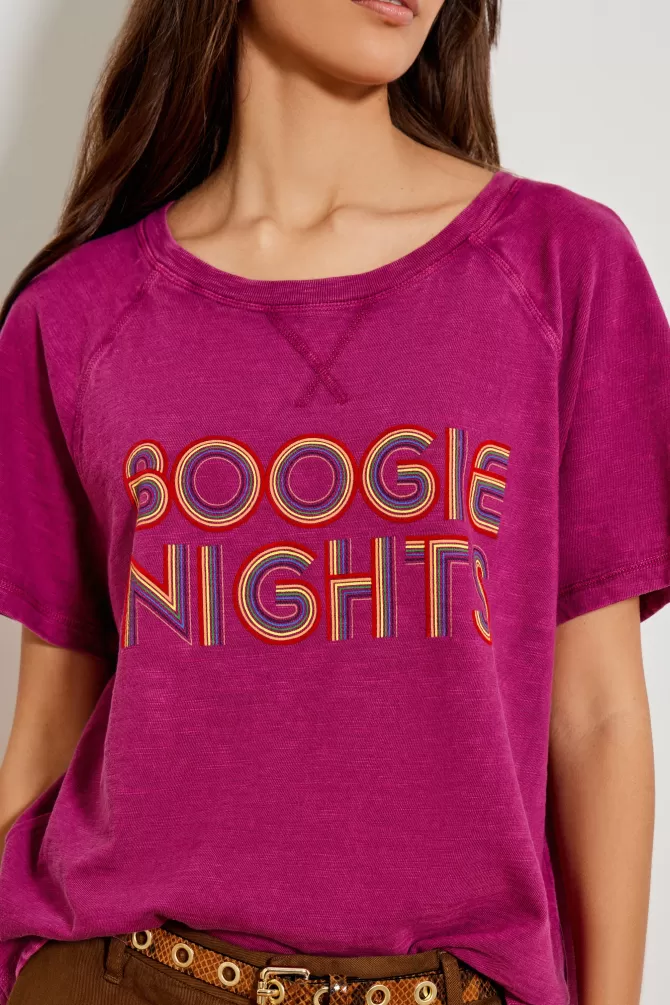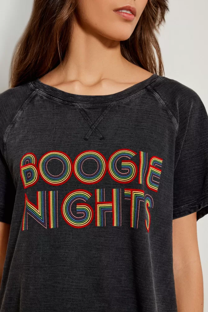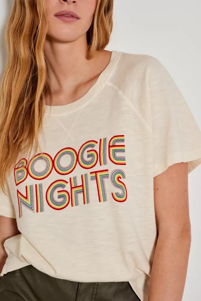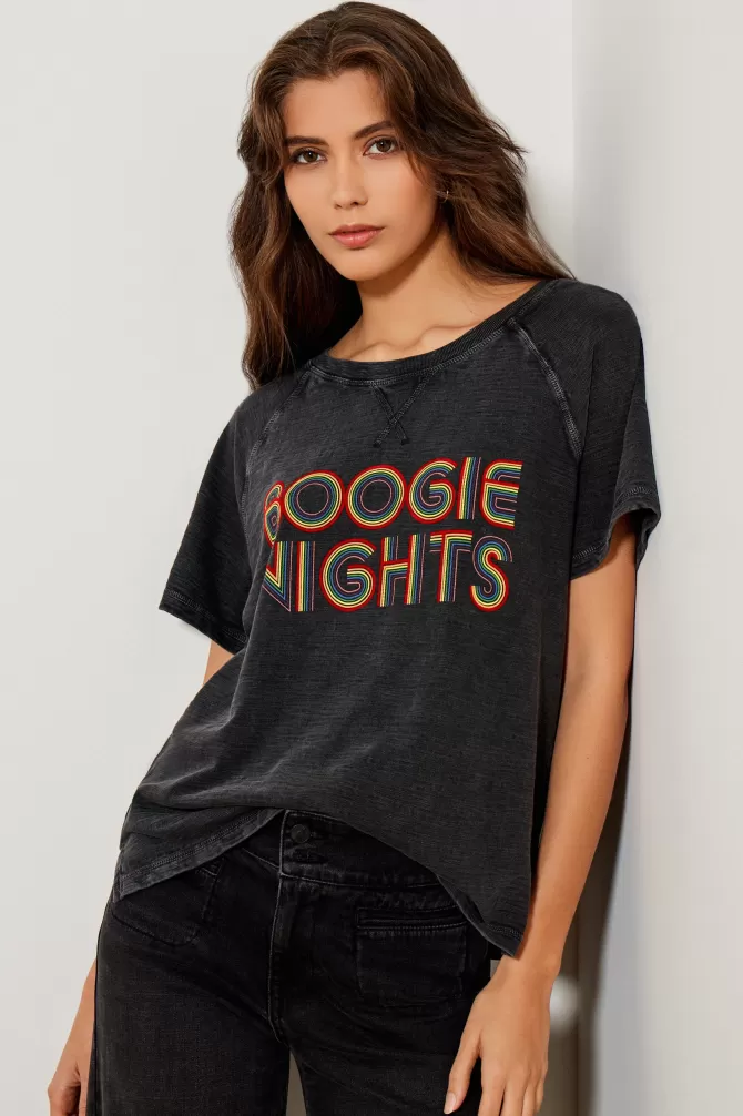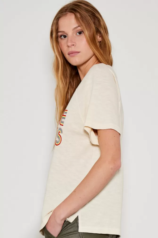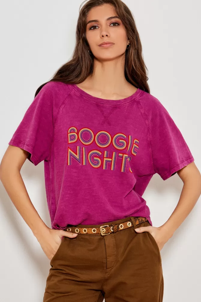 Tee-shirt ampleCol rondManches courtesImpriméNotre mannequin porte une taille S.