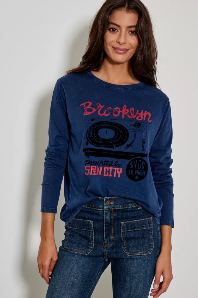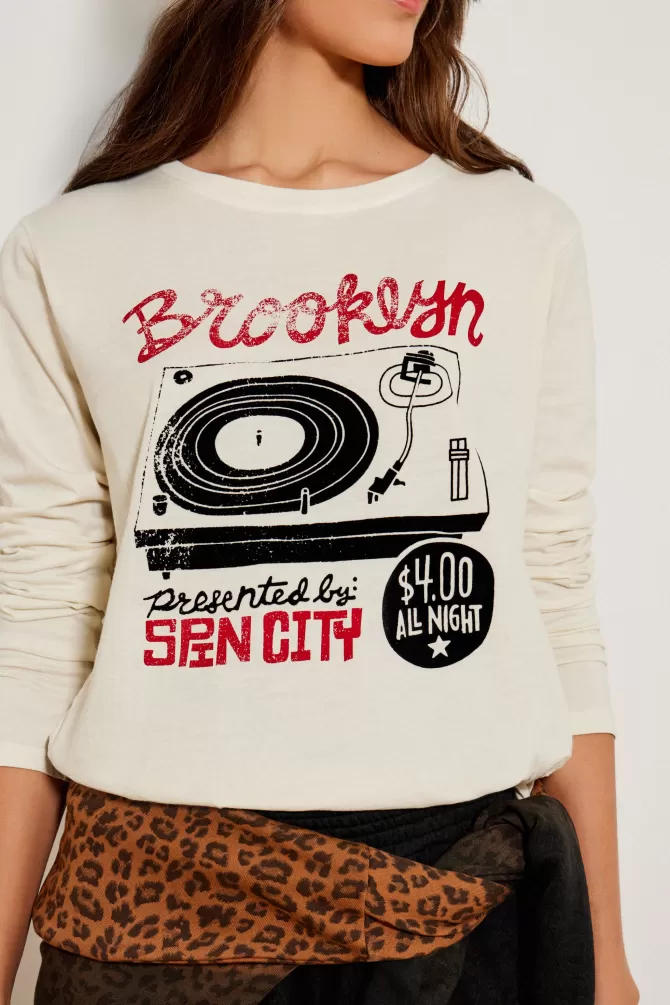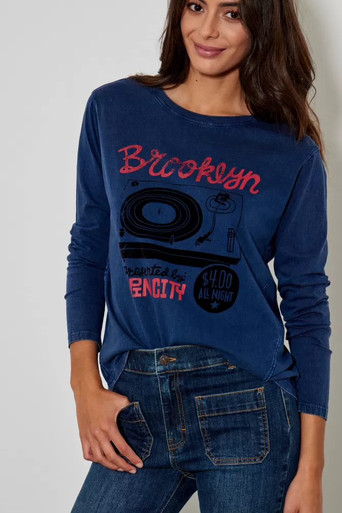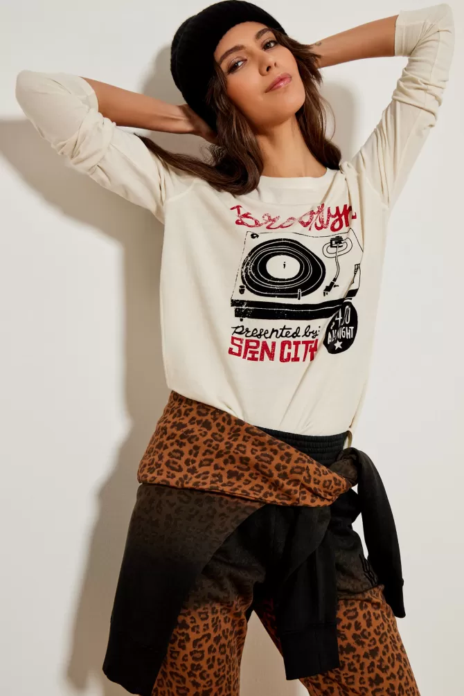 Tee-shirt ampleCol rondManches longuesImpriméNotre mannequin porte une taille S.