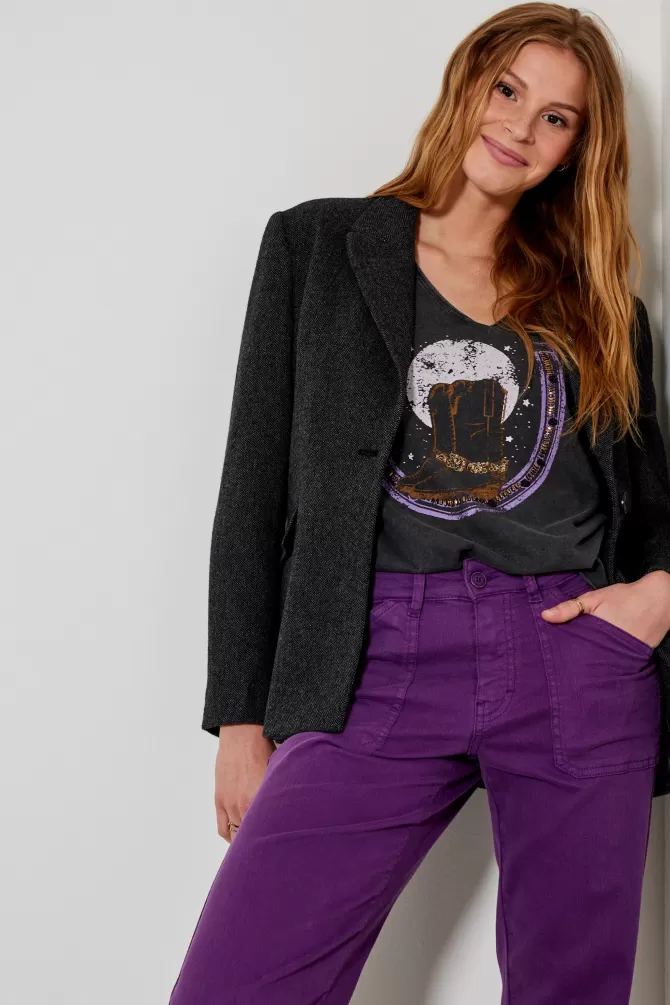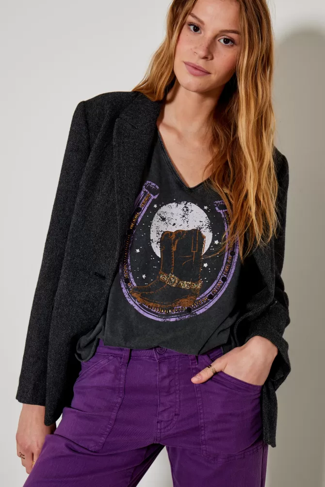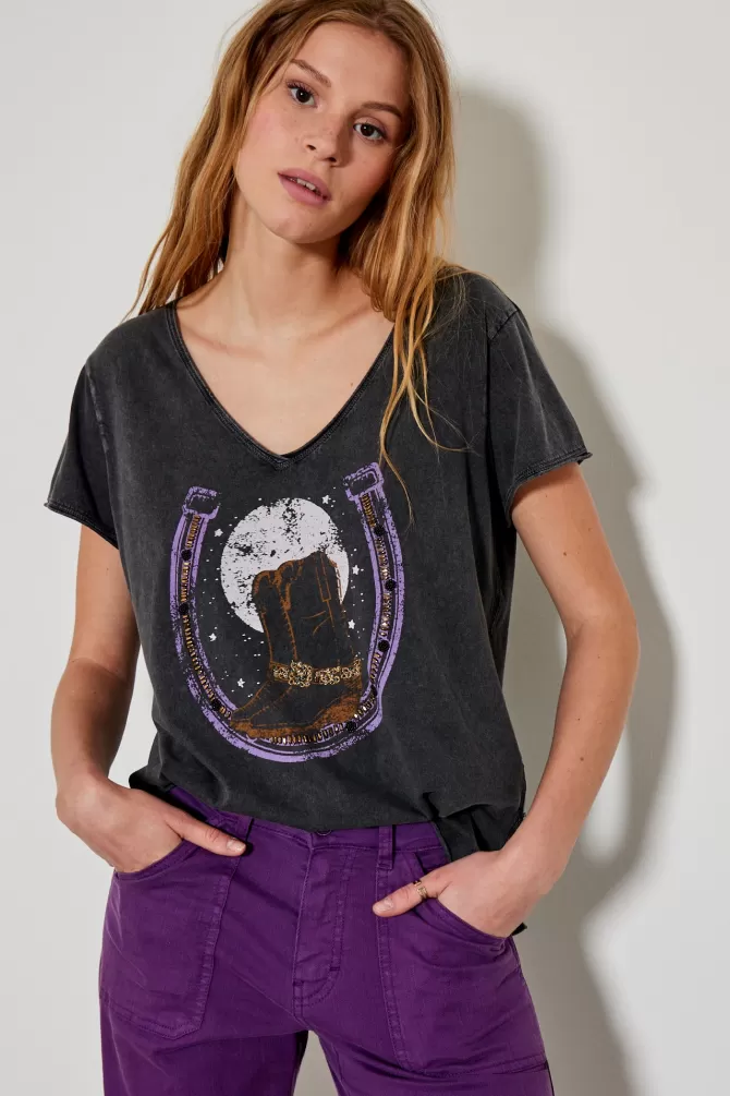 Tee-shirt droitCol VManches courtesImpriméNotre mannequin porte une taille S.