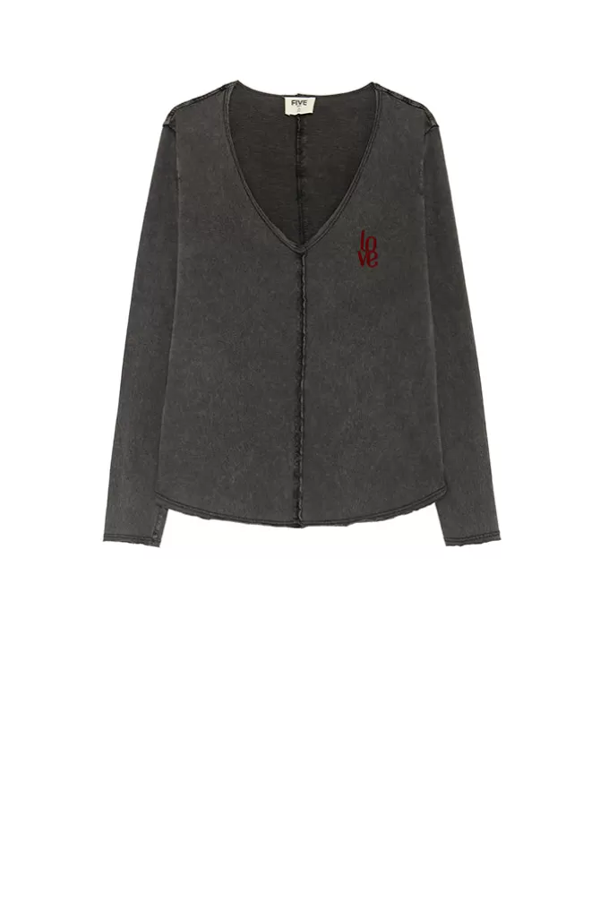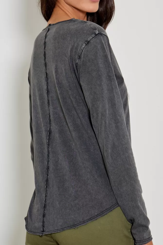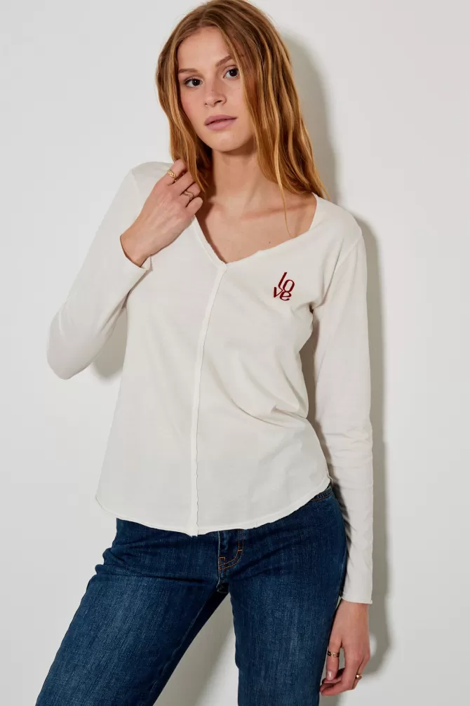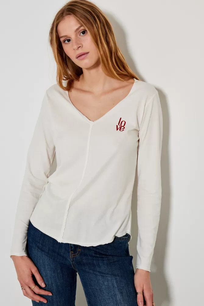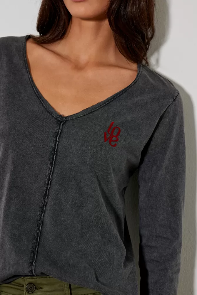 Tee-shirt droitCol VManches longuesImpriméNotre mannequin porte une taille S.