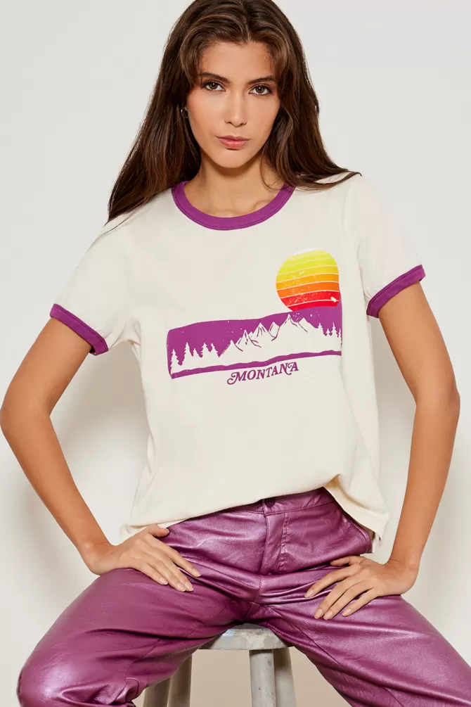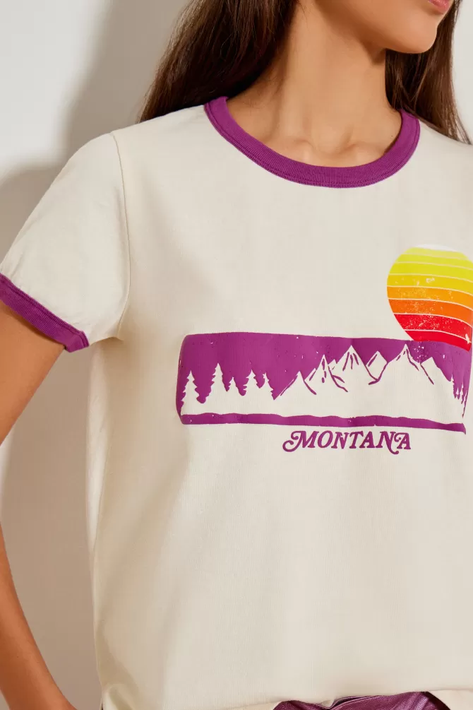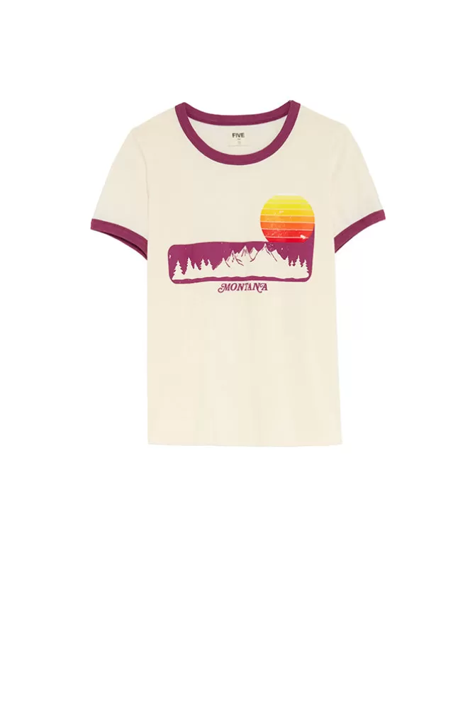 Tee-shirt ampleCol rondManches courtesImpriméNotre mannequin porte une taille S.