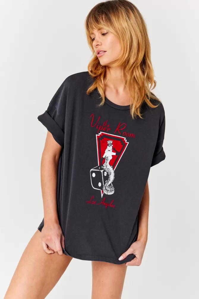 Tee-shirt ampleCol rondManches courtesImpriméNotre mannequin porte une taille S.