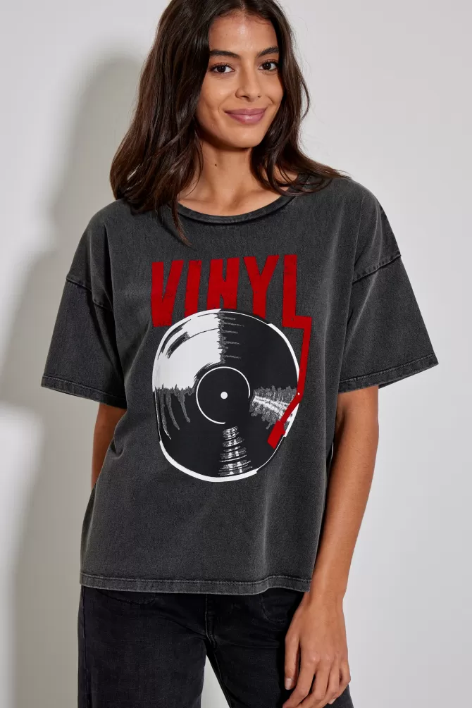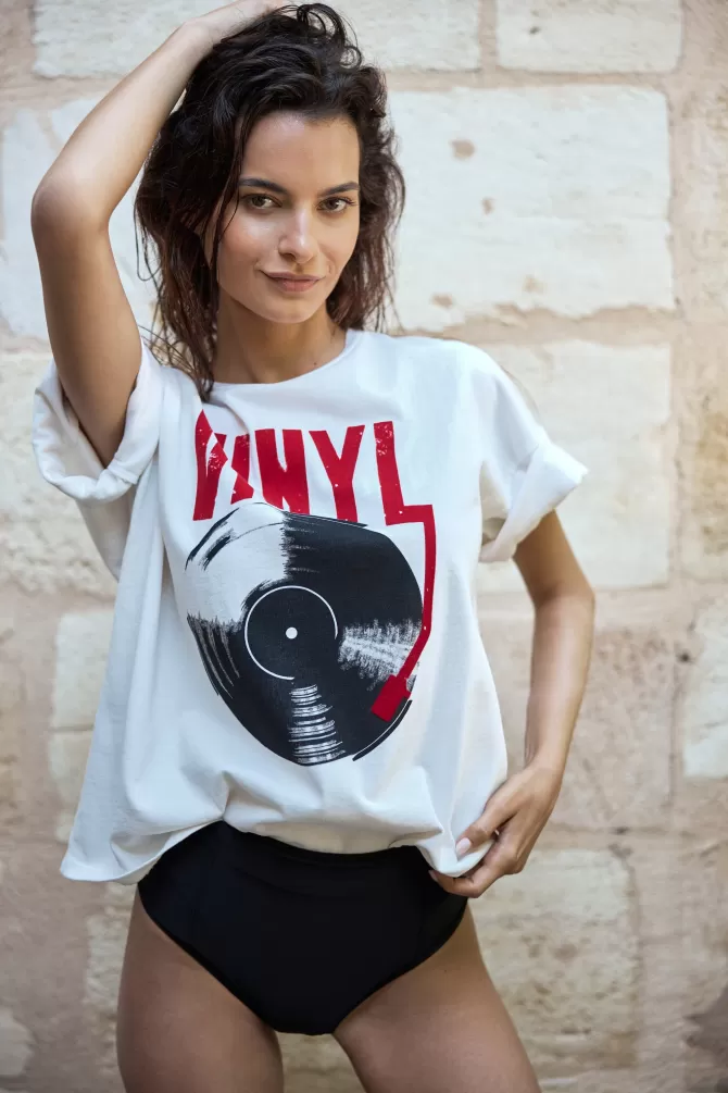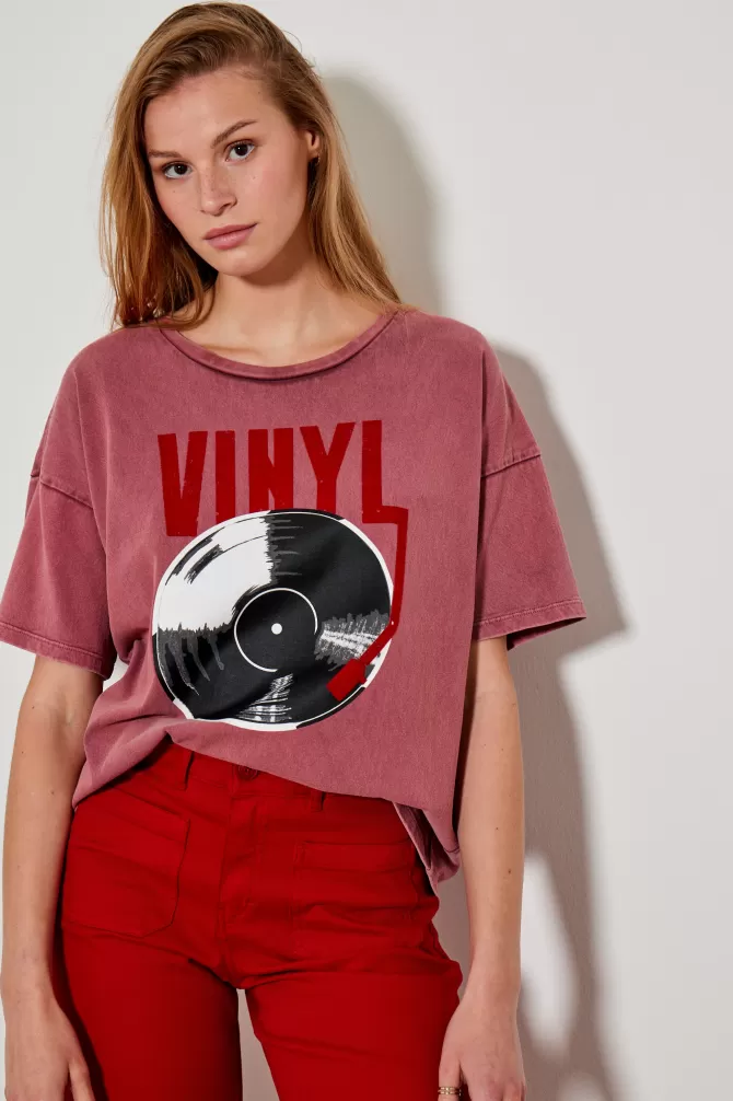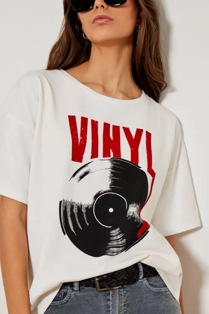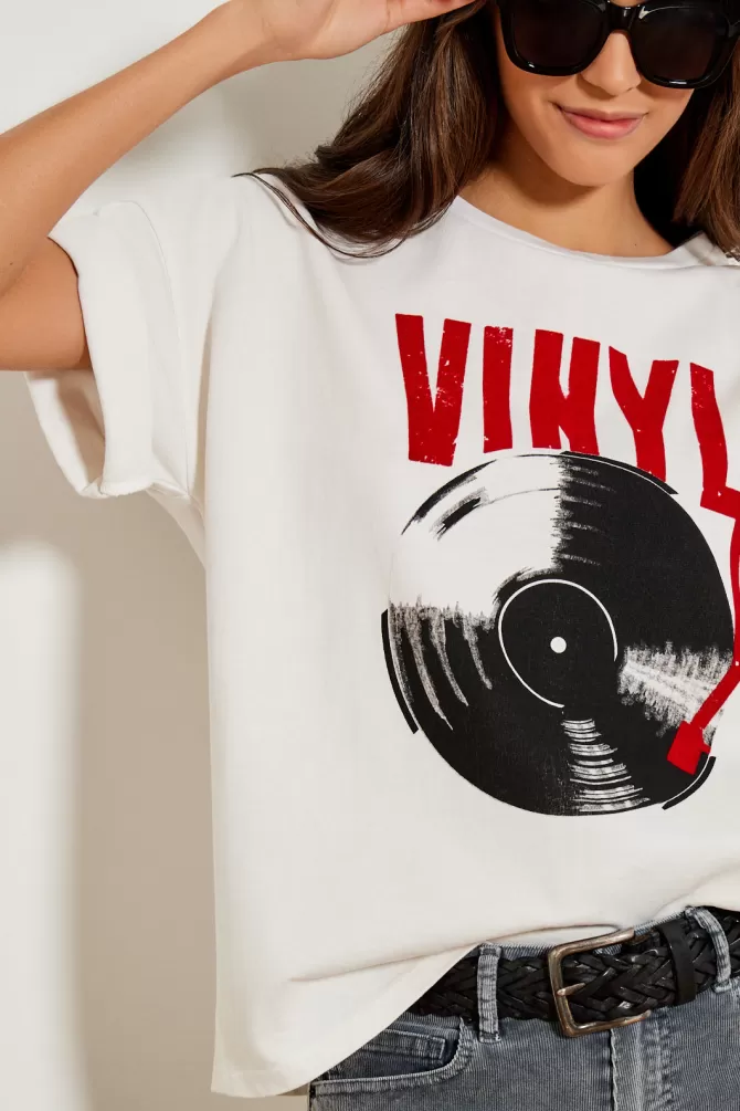 Tee-shirt ampleCol rondManches courtesImpriméNotre mannequin porte une taille S.