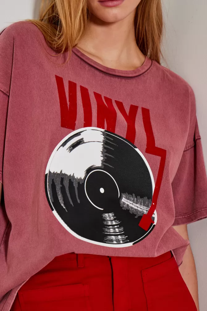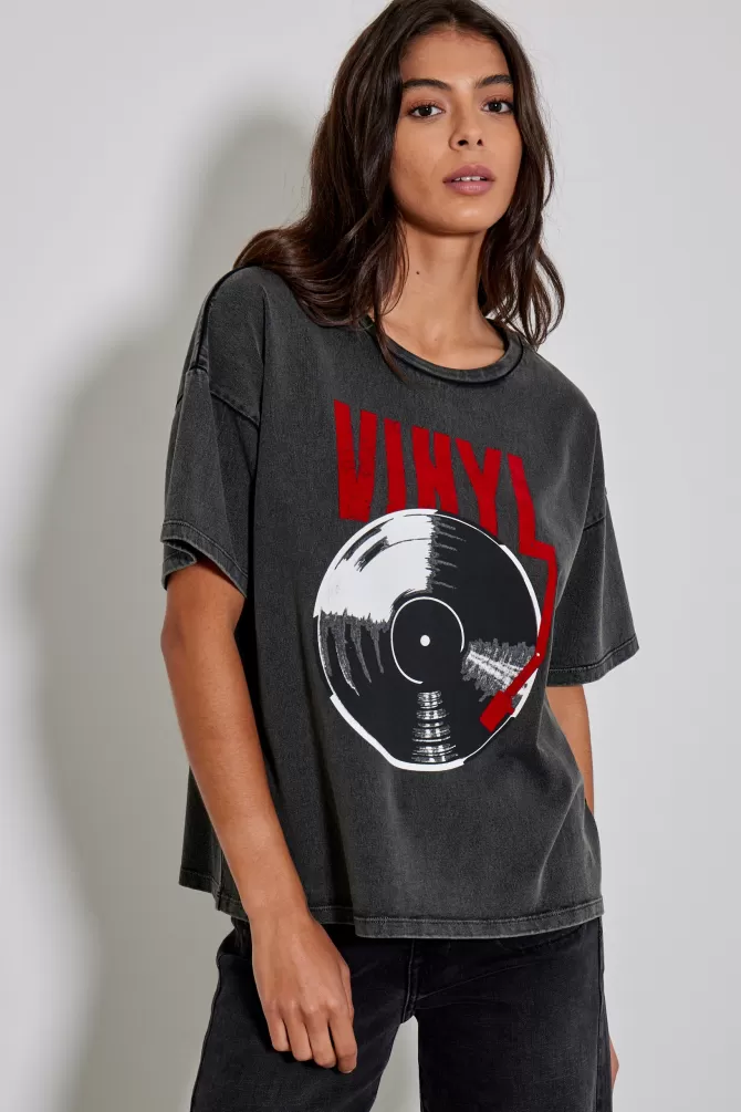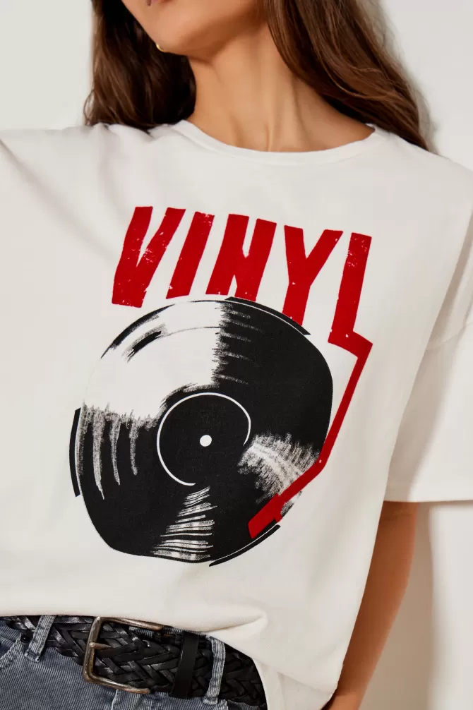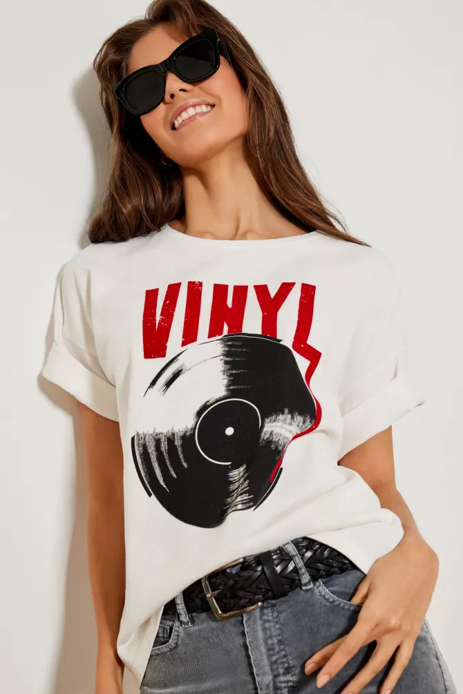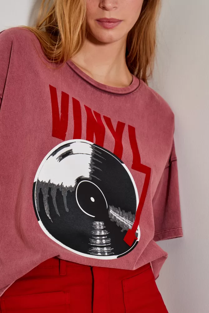 Tee-shirt ampleCol rondManches courtesImpriméNotre mannequin porte une taille S.
