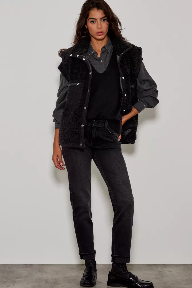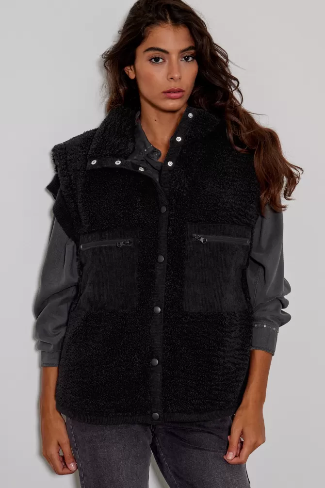 Veste courteCoupe droiteSans mancheFermeture avec un zip2 poches sur le devantComposition: 100% POLYESTERNotre mannequin…