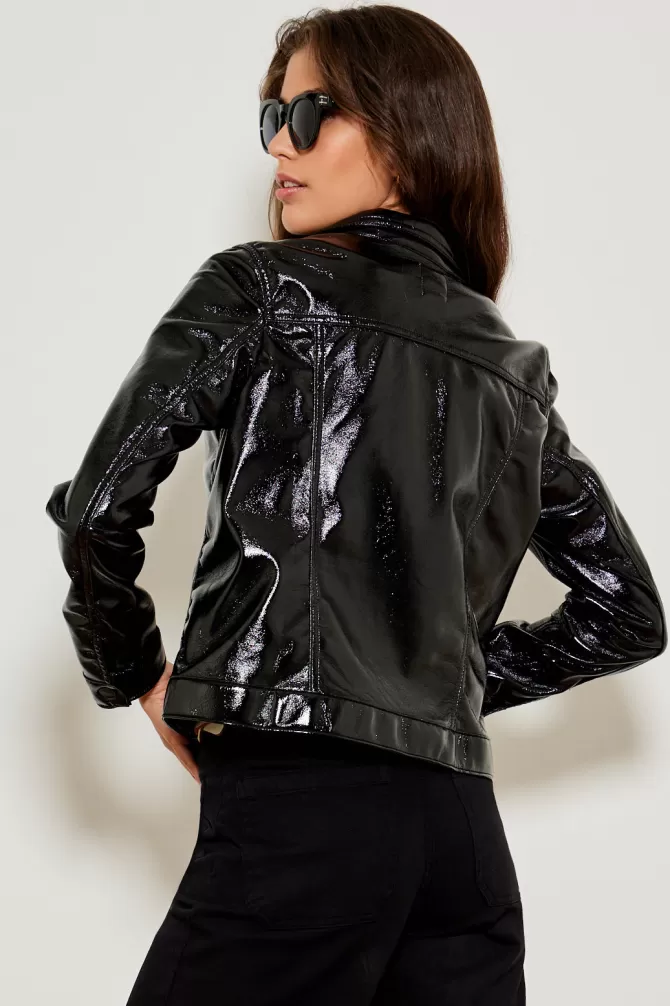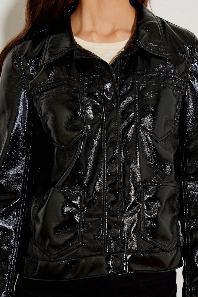 Veste similiCoupe droiteCol libre4 poches sur le devantFermeture avec Boutons griffés FIVENotre mannequin porte une tai…
